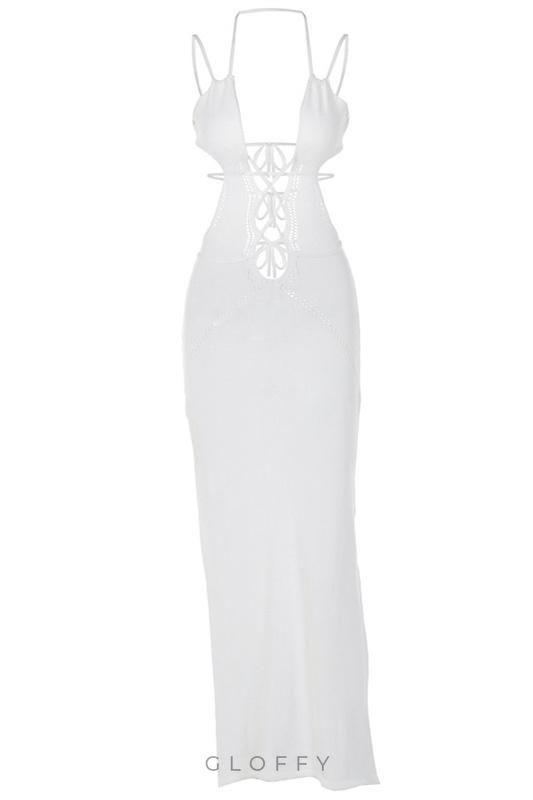 - Tasarım: Yaz yeni şık seksi bağcıklı sırtı açık örme maksi elbise