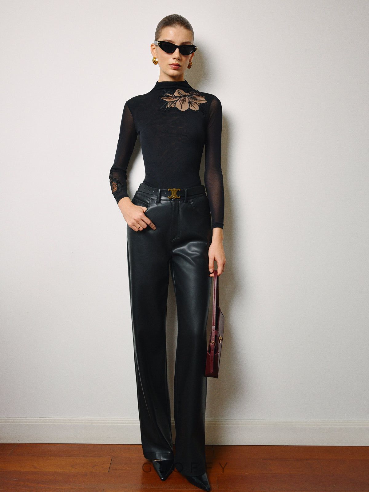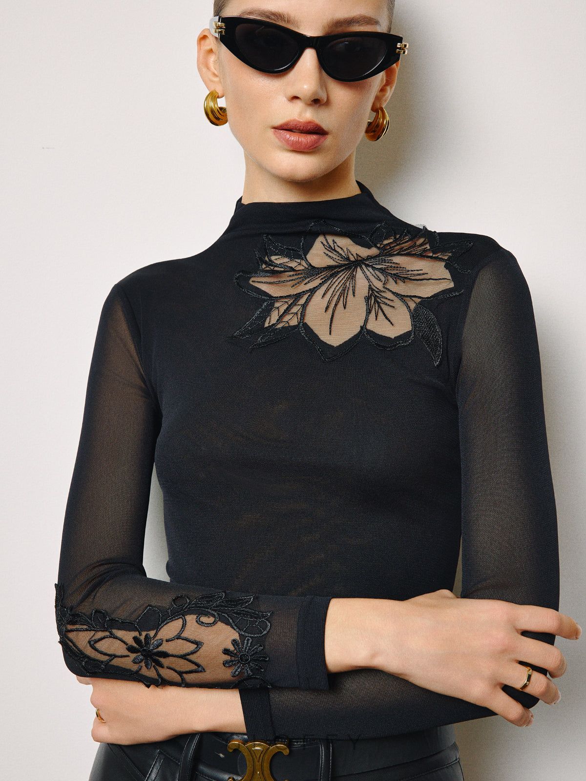 Şık Tasarım: Yanık çiçeklerle süslenmiş bu üst, görünümünüze sofistike bir dokunuş katan zarif asimetrik şeffaf bir tasarıma sahiptir.