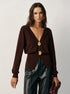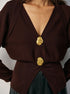 V Yaka Düğmeli İnce Triko Hırka – Kahve