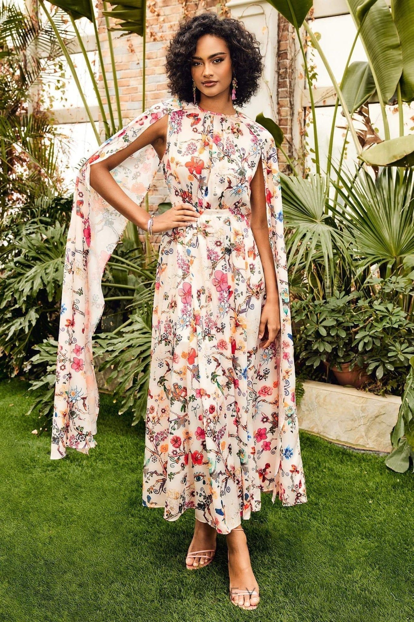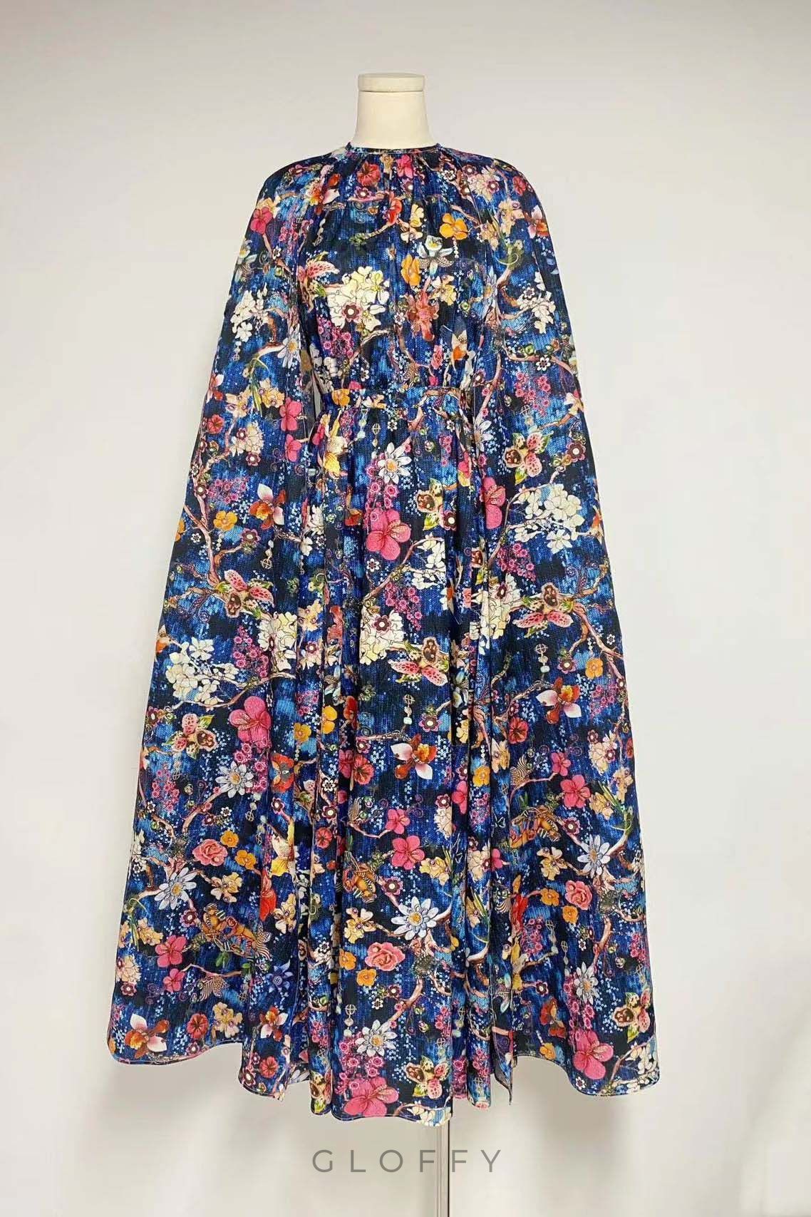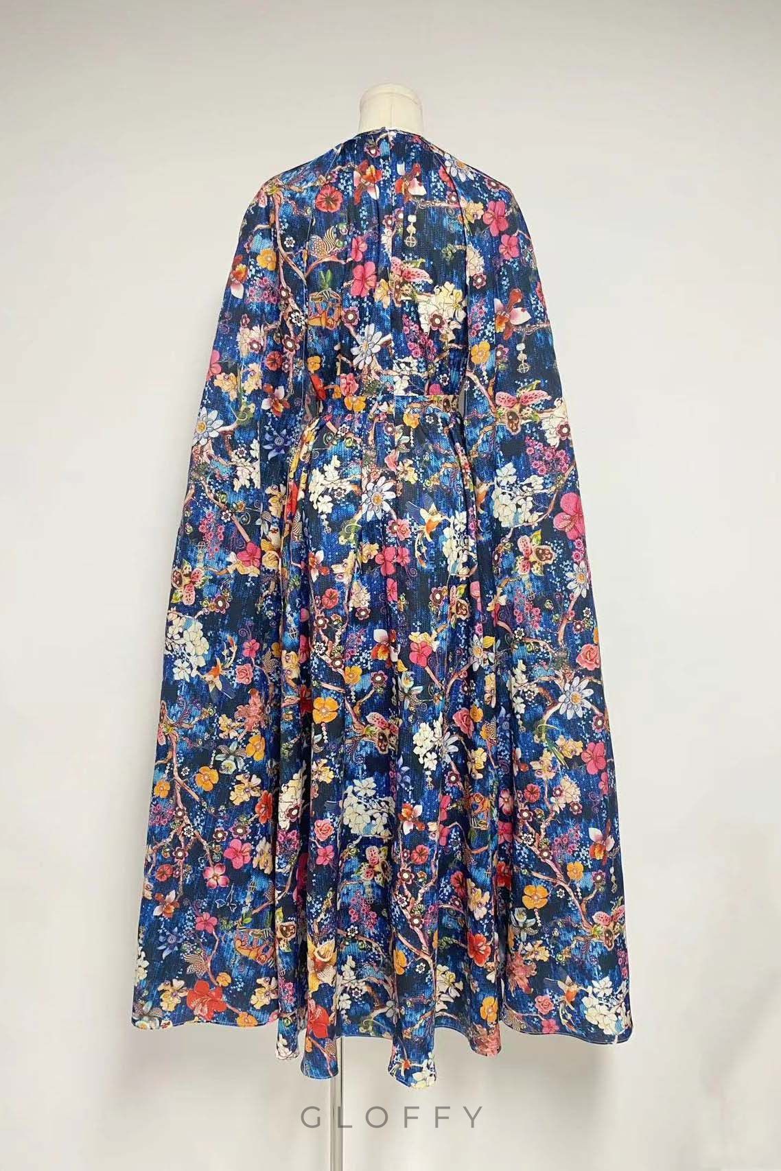 Nola Yuvarlak Yaka Pelerin Kollu Uzun Elbise