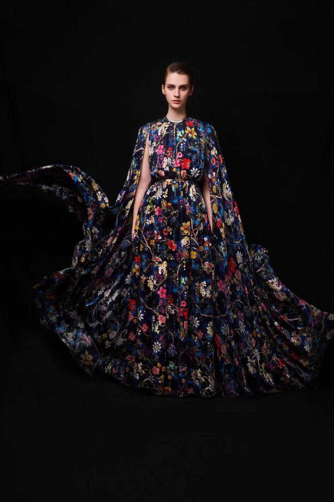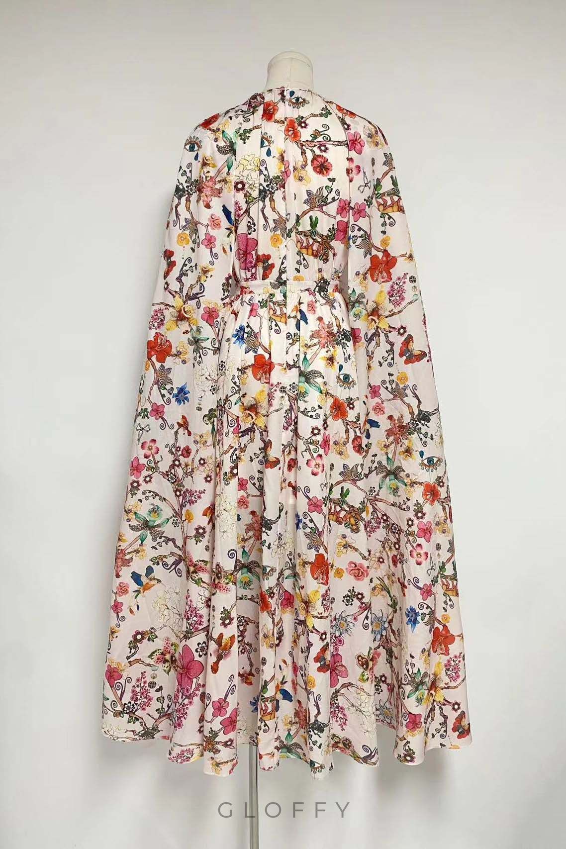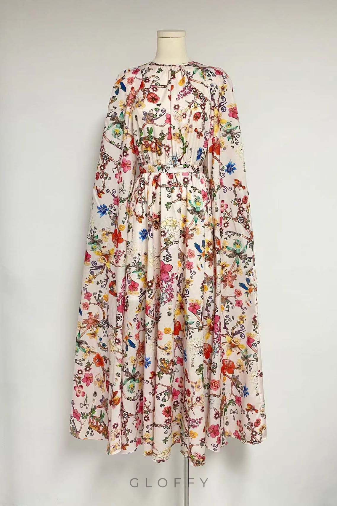 Nola Yuvarlak Yaka Pelerin Kollu Uzun Elbise