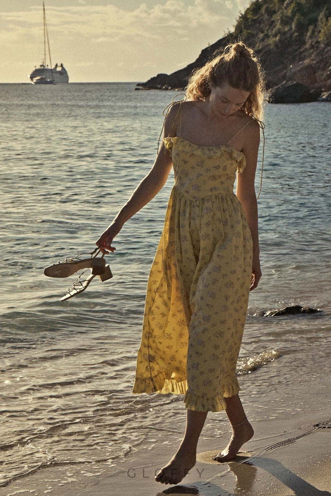 Delphine Fırfırlı Sırt Dekolteli Maxi Elbise