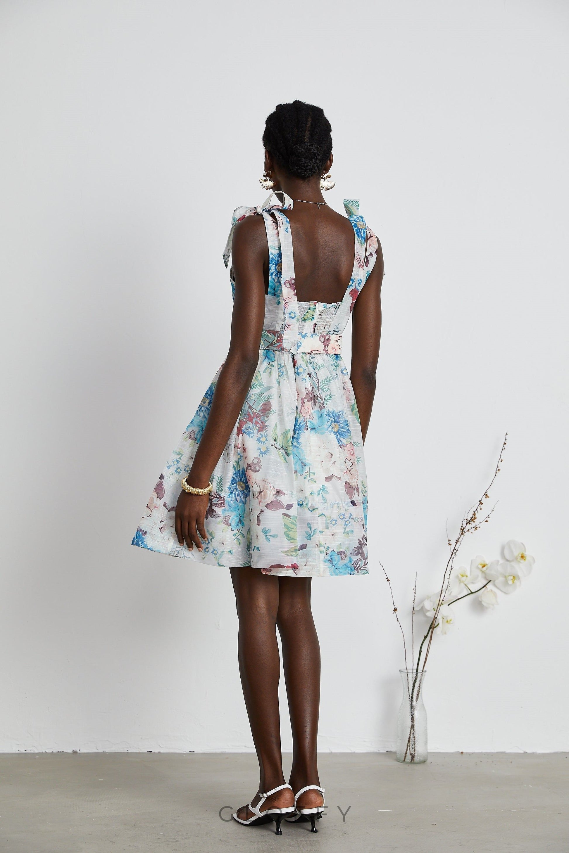 Ophelia Floreal Baskılı Kemerli Mini Elbise