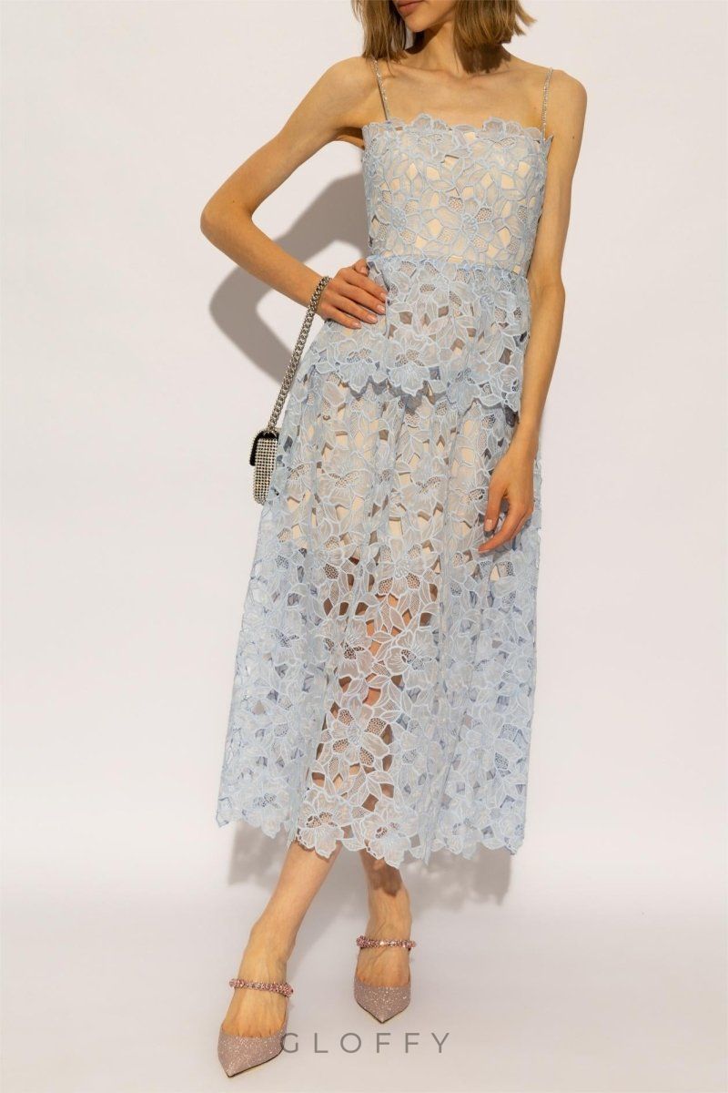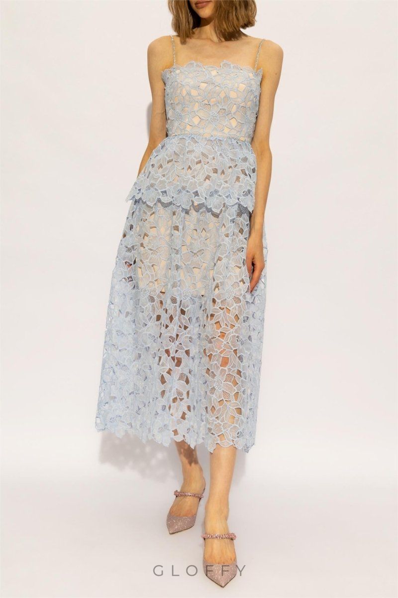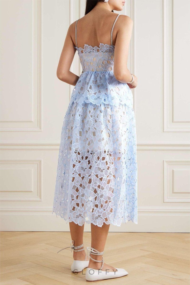 Ophelia Dantel Katmanlı Askılı Midi Elbise