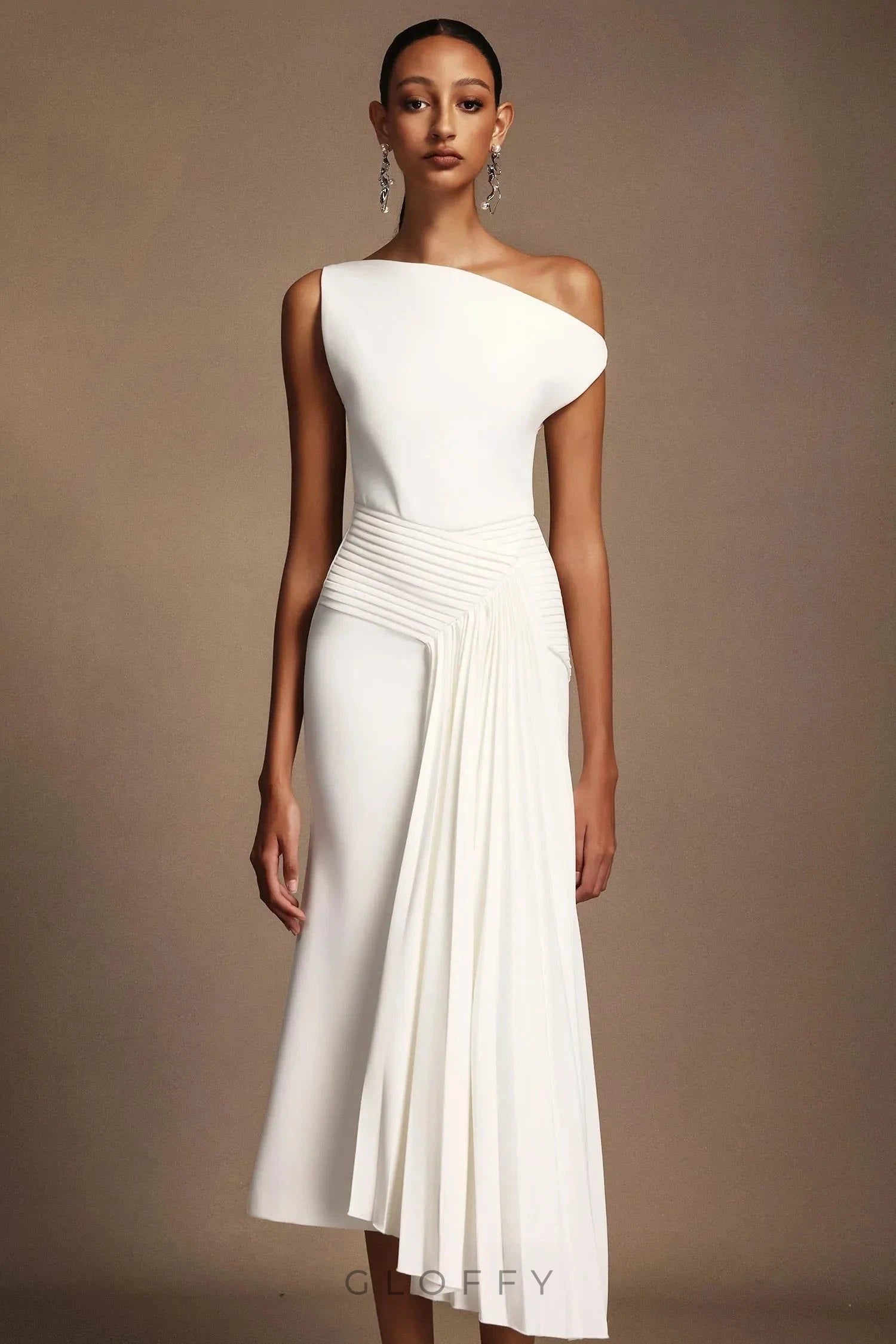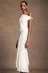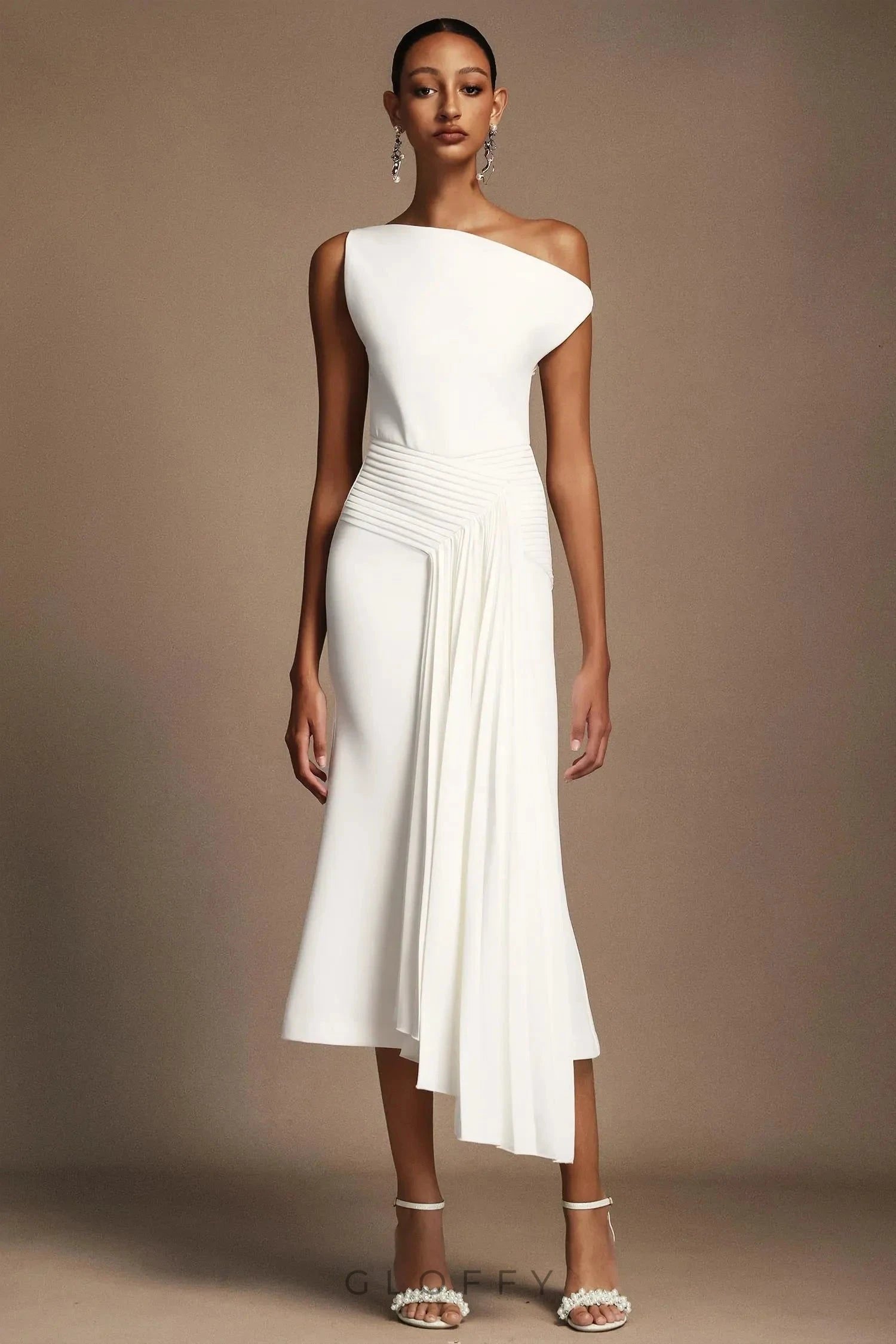 Calandra Asimetrik Omuz Kolsuz Kıvrımlı Midi Elbise