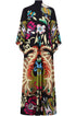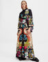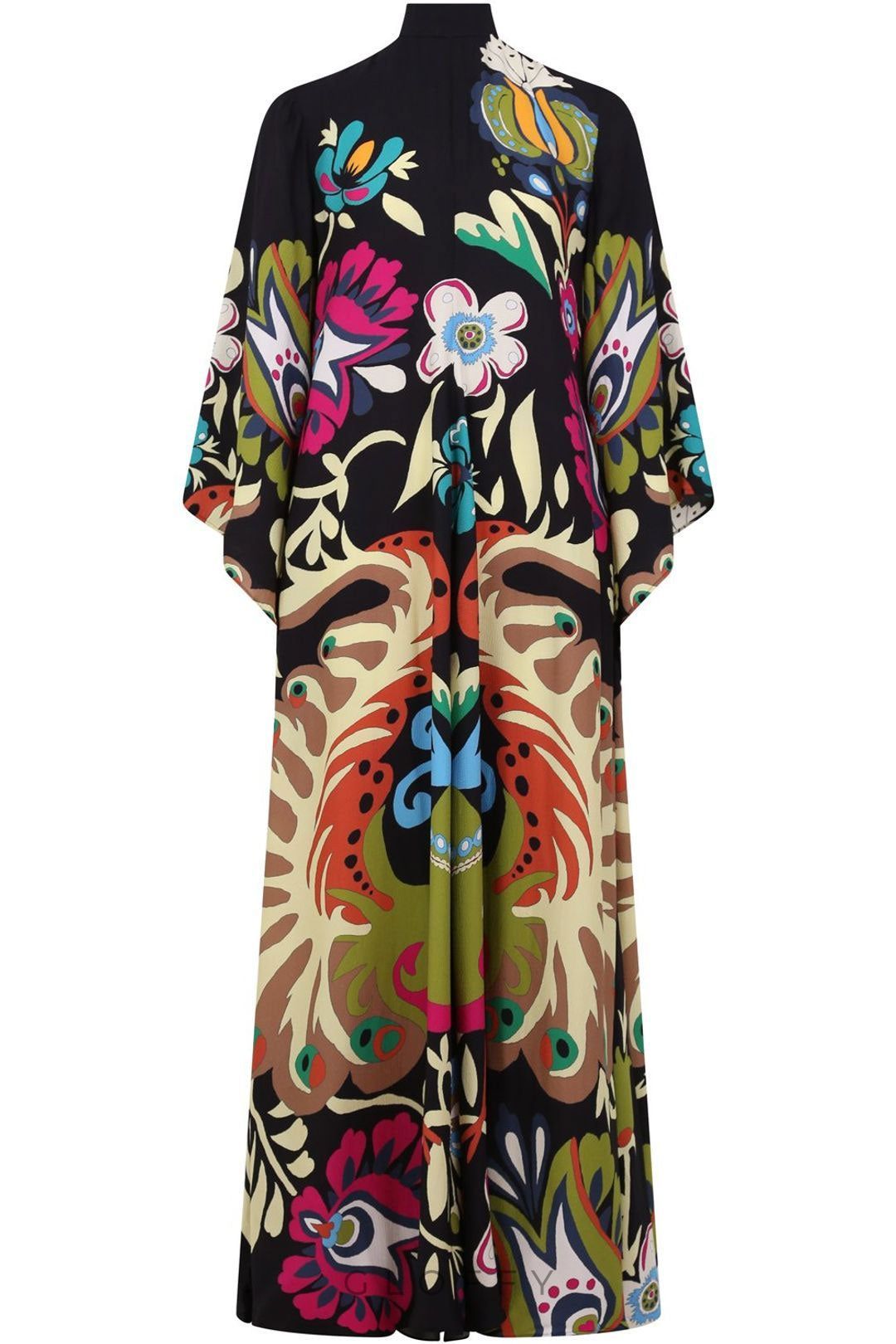 Bu zarif tasarımlı elbise, yüksek yakası, etkileyici arkadan bağlamalı kuşağı ve dökümlü şelale kollarıyla en özel günler için şıklığı temsil ediyor. Çöken saray partileri için mükemmel olan bu parça, hem eklektik hem de cesur stil uzmanları için zahmetsiz bir seçimdir.