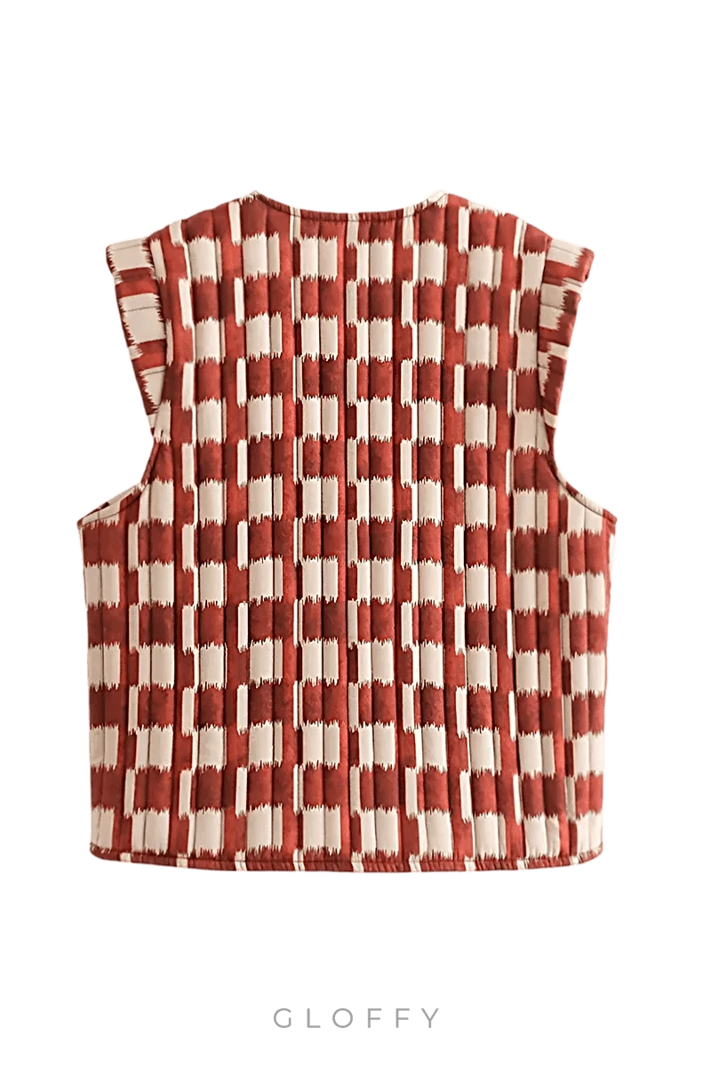 Gömlek veya bluzların üzerine giymek için mükemmel olan bu çok yönlü yelek, işten hafta sonu gezilerine sorunsuz bir şekilde geçiş yapar. Modern tasarımı ve benzersiz baskısı, zarafet ve kolaylıkla öne çıkmanızı sağlar ve bu da onu şık, modaya uygun bir görünüm için vazgeçilmez bir parça haline getirir.