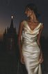 Persis Cowls Sırtı Açık Saten Uzun Elbise