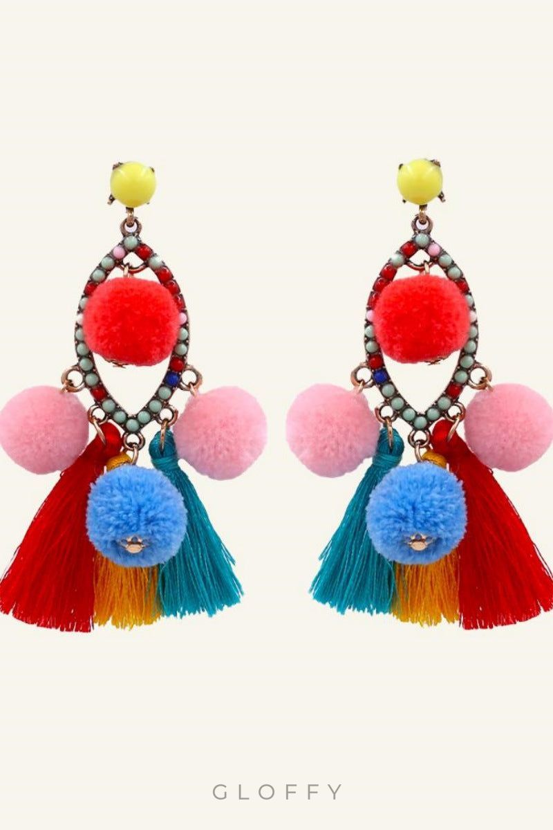 Eğlenceli çekiciliği sofistike stille birleştiren canlı bir aksesuar olan Pom Pom Püskül Küpelerle görünümünüzü yükseltin. Renkli ponponlara ve akıcı püsküllere sahip bu küpeler, her kıyafete canlı bir hava katarak onları hem gündelik kullanım hem de bayram etkinlikleri için mükemmel kılıyor.