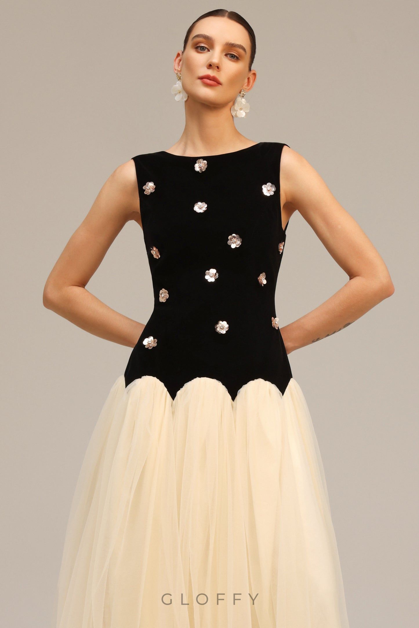 Gloffy’nin zamansız zarafet anlayışıyla hayat bulan bu özel tasarım, her adımda sofistike bir duruş sunmak üzere özenle hazırlandı. Işıltılı dokusu, özgün kesimi ve vücuda zarifçe oturan siluetiyle stiline güçlü bir imza atmak isteyen kadınlar için mükemmel bir tercih. Gündüz zarafetini gece ışıltısına taşımak isteyenler için kusursuz bir tamamlayıcı.