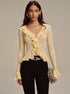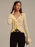 Fırfır Detaylı V Yaka Fitilli Hırka – Sarı
