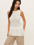 Püskül Detaylı Ajurlu Kolsuz Triko – Ekru