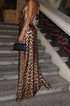 Bu boyundan bağlamalı, leopar desenli elbise, cesur bir zarafet yayıyor. Derin V yakalı ve sırtı açık tasarıma sahip bu model, göz kamaştıran yüksek bel ve akıcı maksi uzunluğuyla silüetinizi vurguluyor. Partilerde veya görkemli akşam etkinliklerinde dikkat çekmek için mükemmeldir.