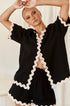 Düz gömlek bluz ve kontrast yama işi ile yüksek bel geniş bacak şortundan oluşan düz monoton setimiz kesinlikle dikkat çekicidir. Yaz setleri tüm yıl boyunca en çok satan saatlerdir. Günlük bir etkinlik olan bu geceki buluşmada baskılı desenli yaka ve kollar, genel görünümün estetiğine sadece bir dokunuş katıyor.