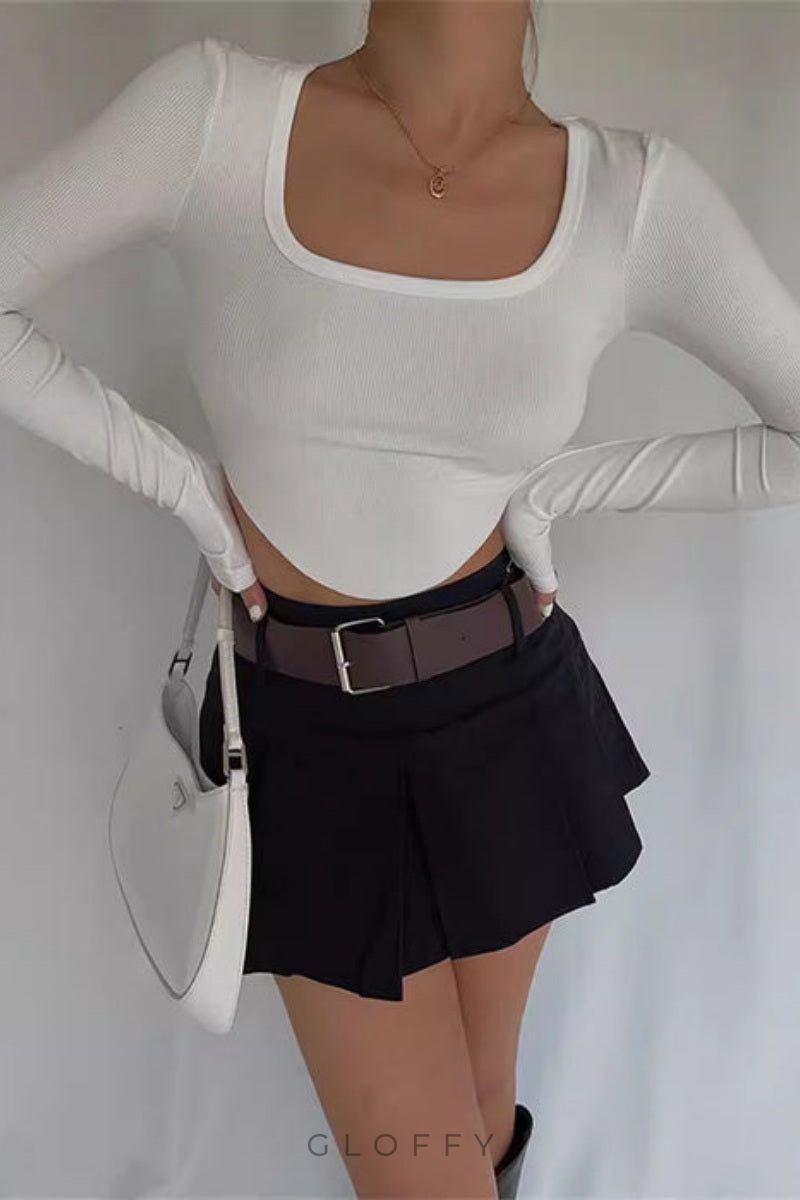 Kare Yaka Düzensiz Etek Uzun Kollu Alt Gömlek