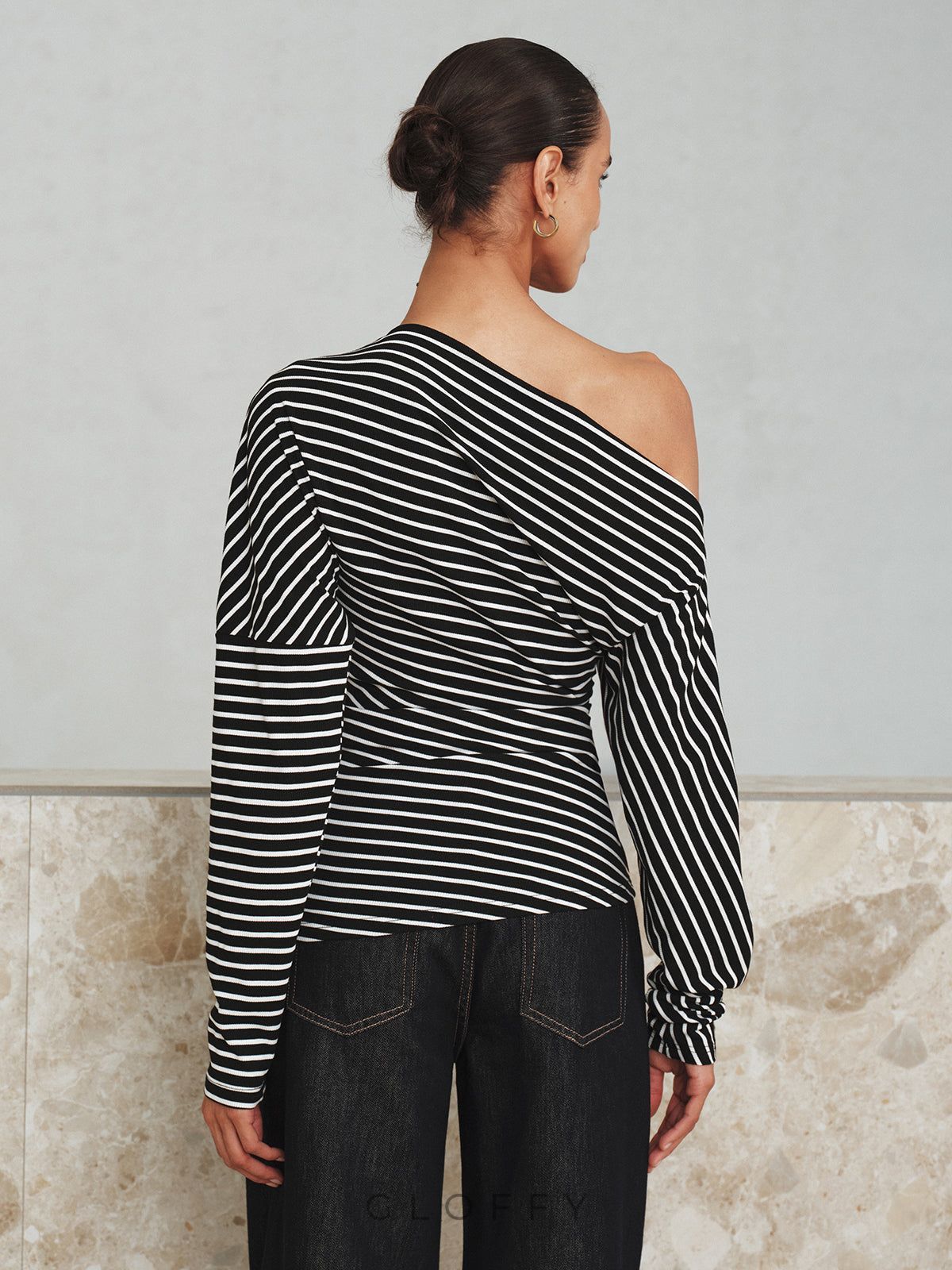 Çizgili Asimetrik Tek Omuz Tişörtü
