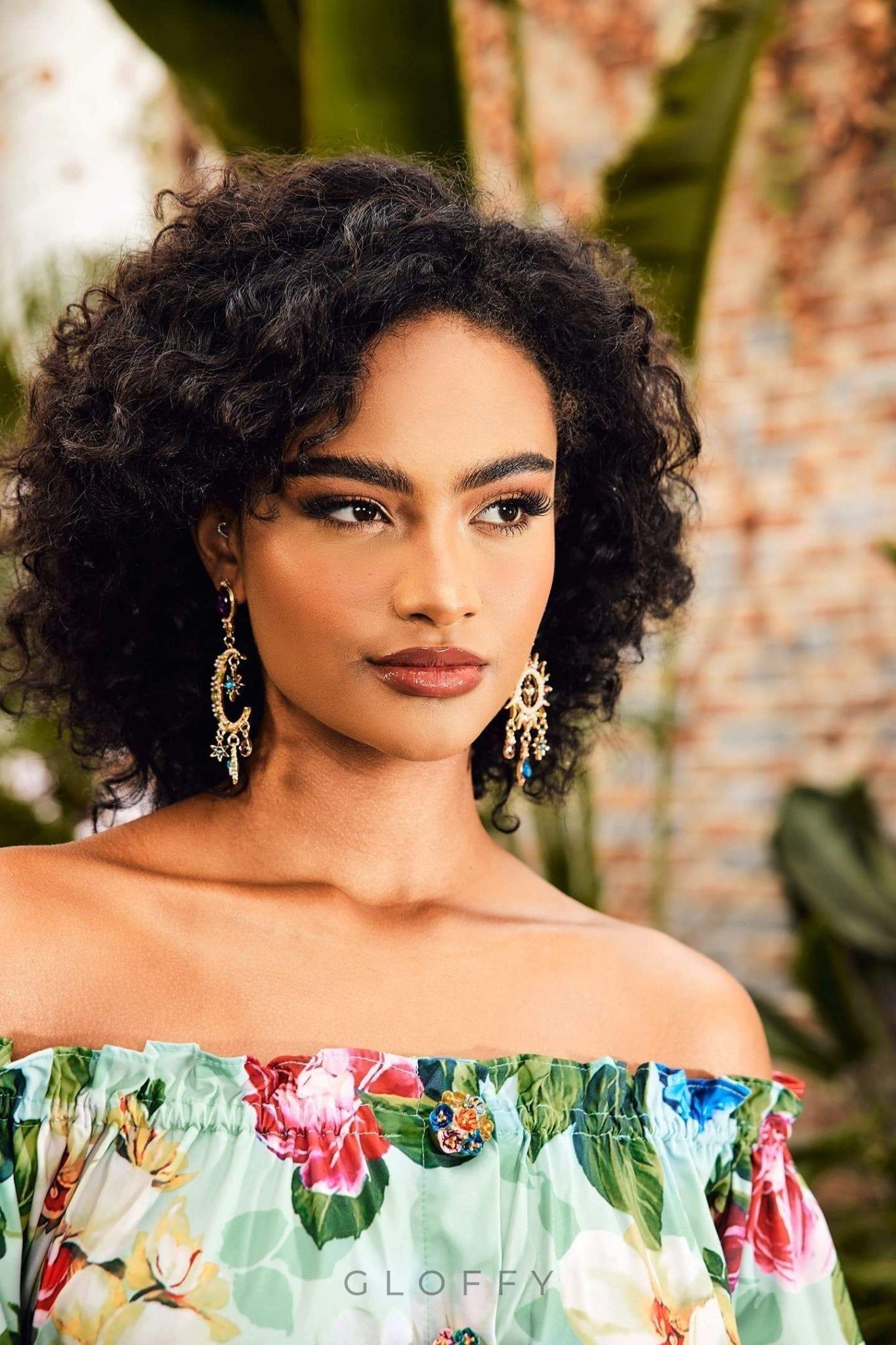 Bonnie Omuz Açık Volanlı Uzun Elbise