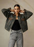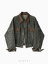 Vintage Kontrast Süslü Yaka Denim Ceket