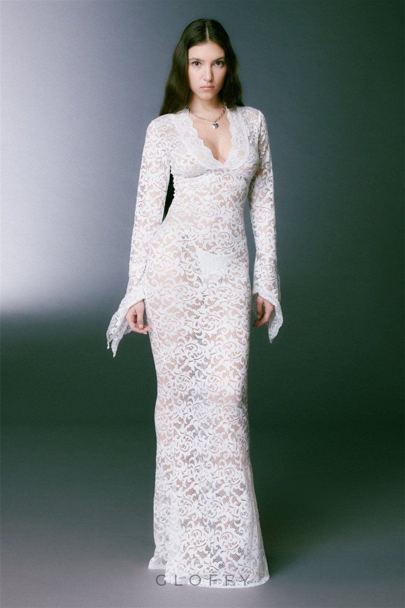 Virginia Şeffaf Dantel Denizkızı Uzun Elbise