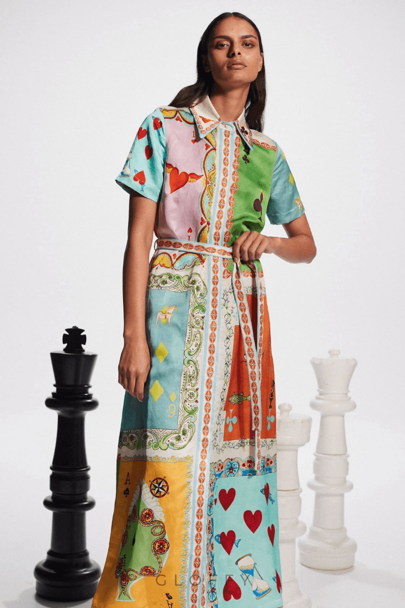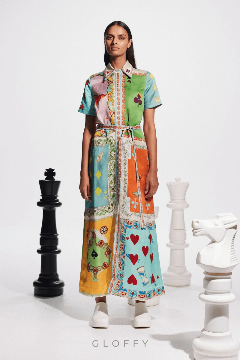 Dökümlü silüeti ve benzersiz baskısıyla bu elbise, rahat ama gösterişli bir görünüm için mükemmel bir seçimdir. İster gündelik bir gün için düz ayakkabılarla eşleştirin, ister topuklu ayakkabılarla giyin, gardırobunuza çekicilik katan çok yönlü bir parçadır.