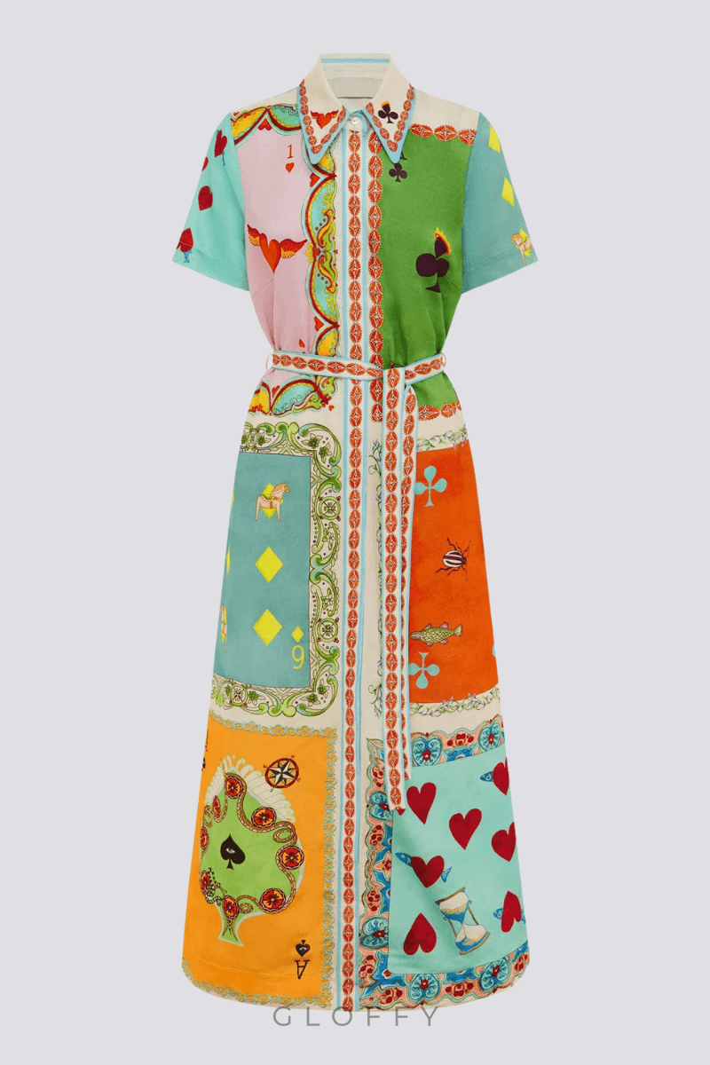 - Tasarım: Zil kollu ve baskılı tasarımlı düğmeli elbise