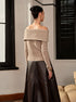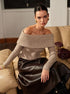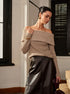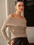 Kayık Yaka Fitilli Triko Kazak – Bej