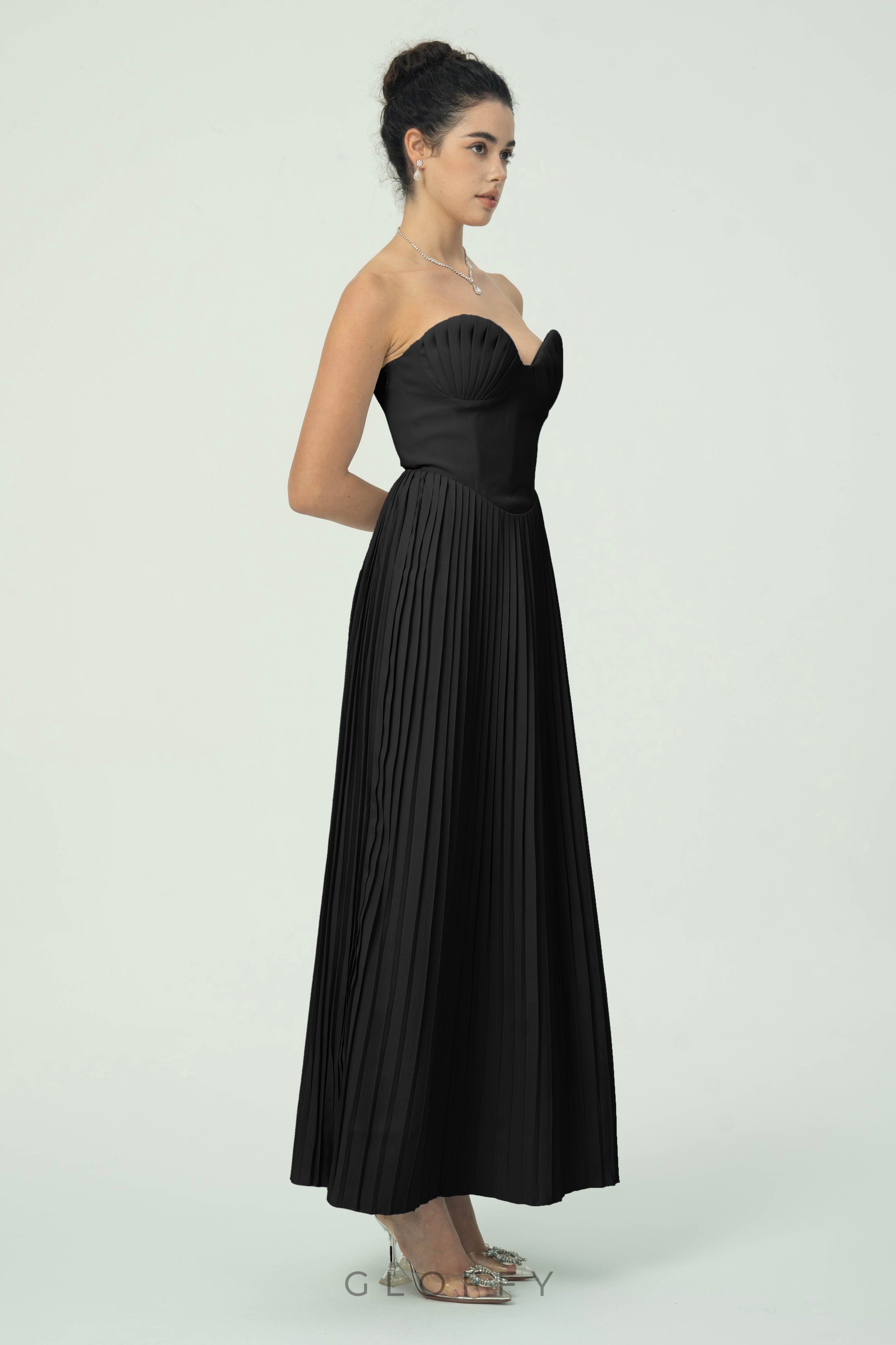 • Yaka: Straplez kalp yaka