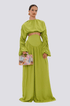 - Tasarım: Üstü yuvarlak yakalı, pilili uzun kollu iki parçalı set
