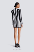 - Tasarım: Siyah beyaz çizgili, dekolteli mini elbise