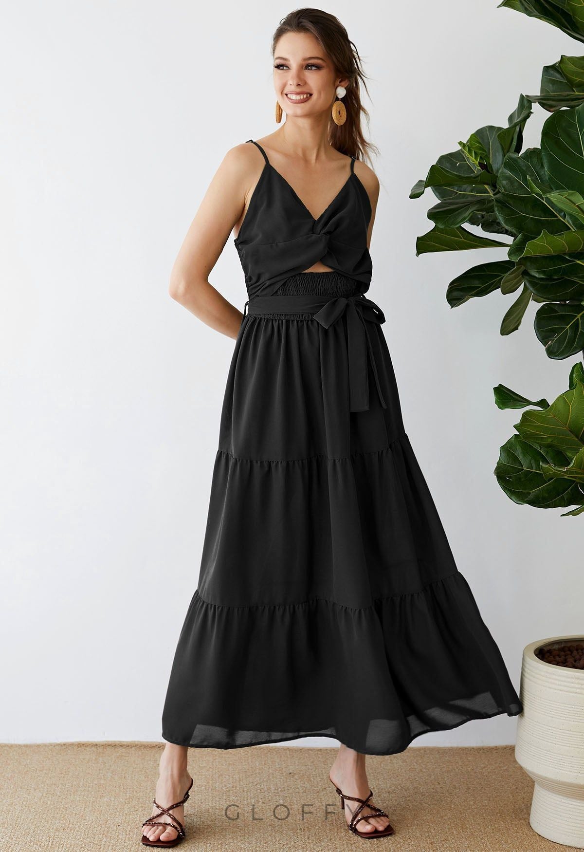 Benzersiz tasarımıyla öne çıkan bu maxi elbise, özel günlerde ve şık davetlerde stilinizi tamamlar. Topuklu ayakkabılar ve zarif bir clutch ile kombinleyerek kusursuz bir şıklık yakalayabilirsiniz.