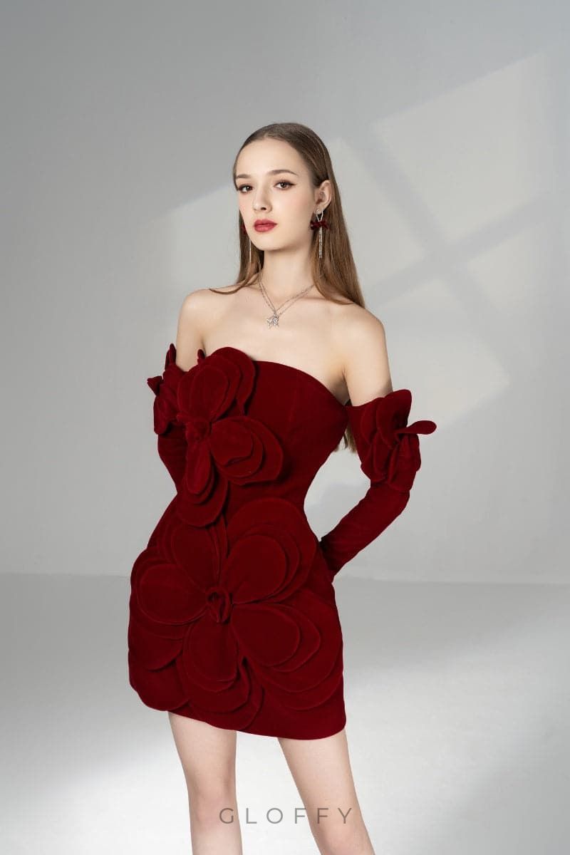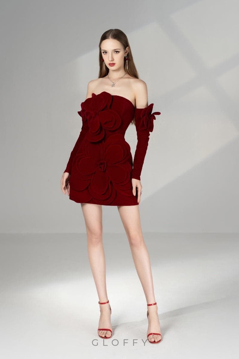 Stil Notu: Cesur ve sanatsal bir duruş sergileyen bu straplez mini elbise, 3D çiçek aplikeleriyle heykelsi bir görünüm kazandırıyor. Vücuda tam oturan kalıbı ve zarif kırmızı tonu ile gecenin yıldızı olmanız garanti.