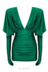 Bu mini elbise, sofistike ve çok yönlü bir görünüm için derin V yakalı, çıkarılabilir eldiven kollu ve dantelli korsajlıdır. İpek jarse örgü ve Tencel karışımından üretilen bu ürün, orta esnekliğe sahip, göz alıcı bir uyum sunar.