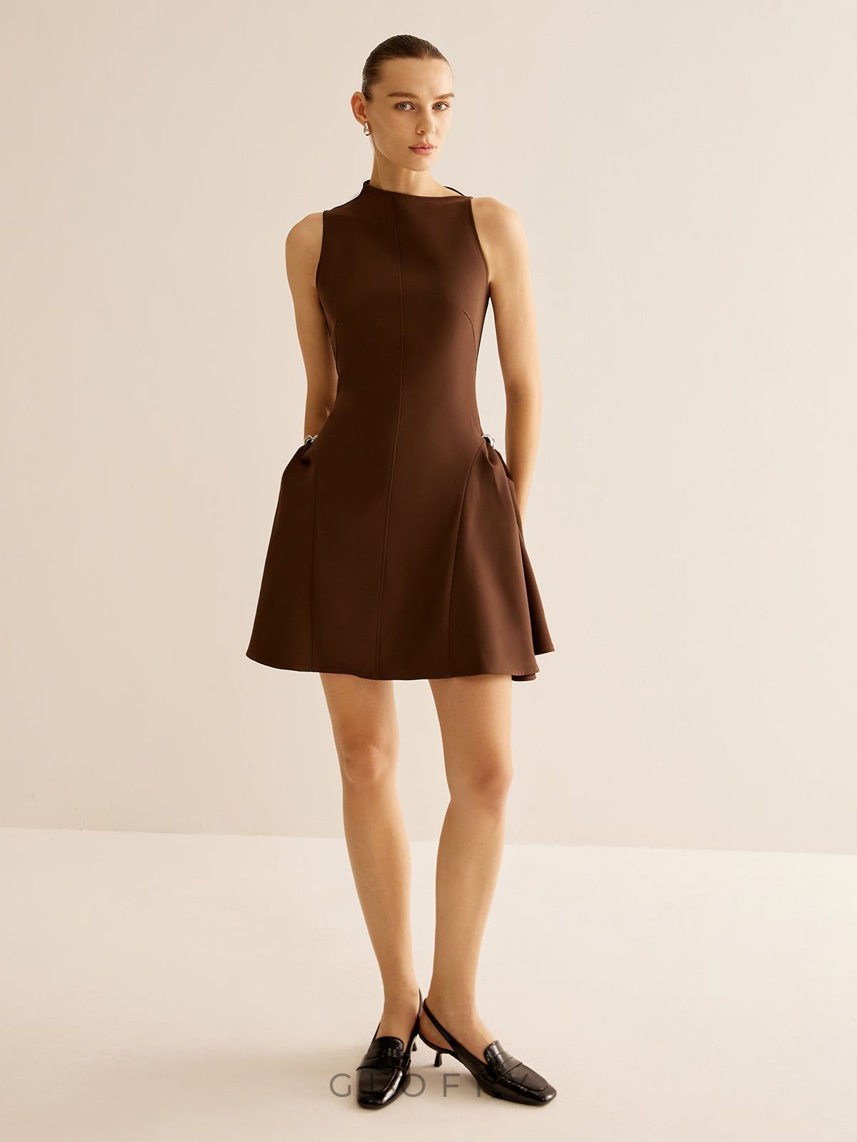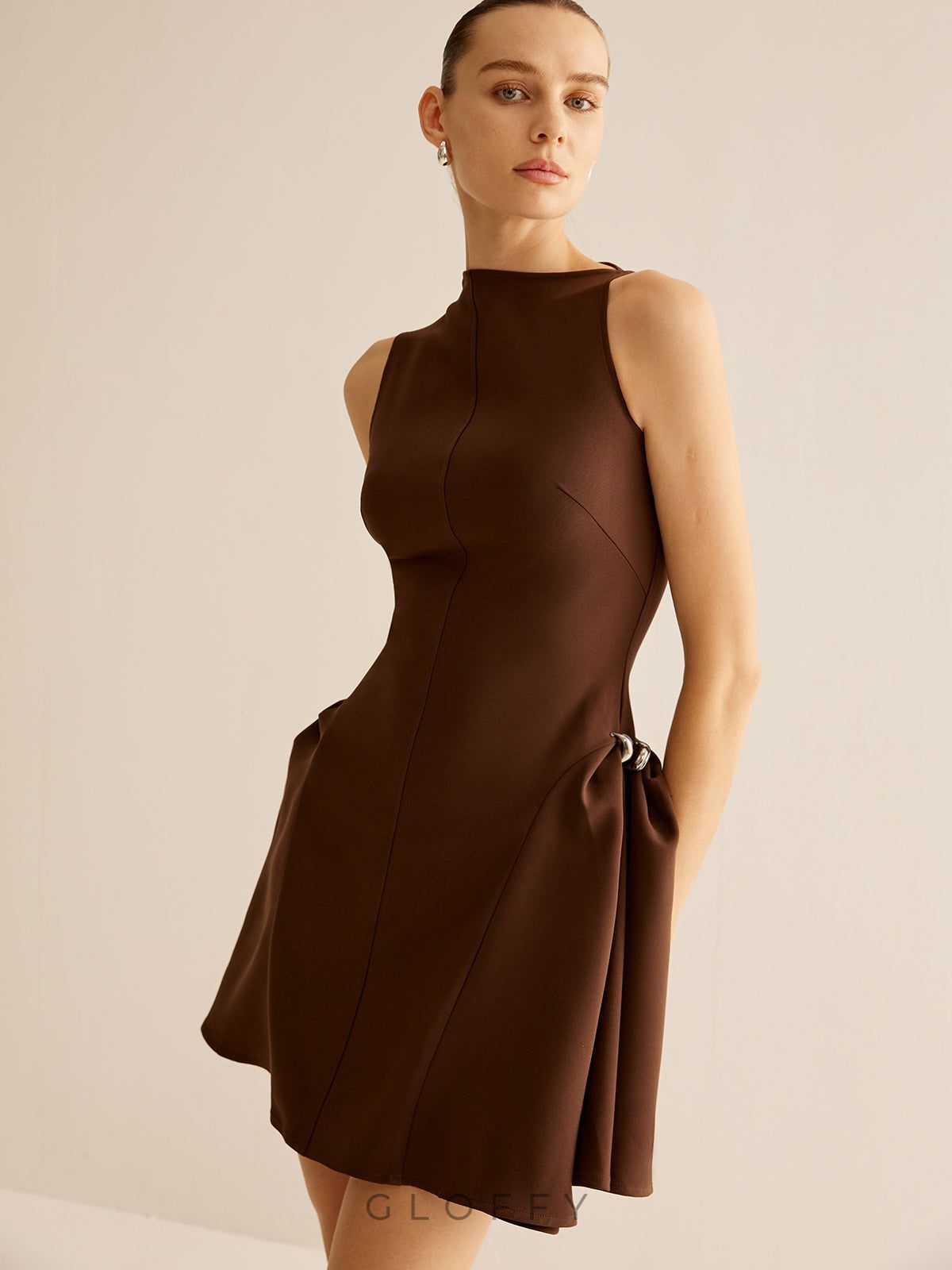 Solmira Metal Tokalı Flare Mini Elbise