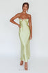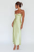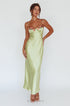 Stil Notu: Işıltılı lime yeşili saten kumaş ve çiçek işlemeli askılarıyla büyüleyici bir zarafete sahip olan Zemira elbise, yaz davetlerinin vazgeçilmez parçalarından biri olmaya aday. Feminen silueti vurgulayan kalıbı ve zarif detaylarıyla sade ama etkileyici bir görünüm sunar.
