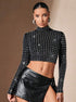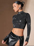 Mock Yaka Strass Detaylı Kısa Bluz Tişörtümüzle Işıltınızı Yansıtın!