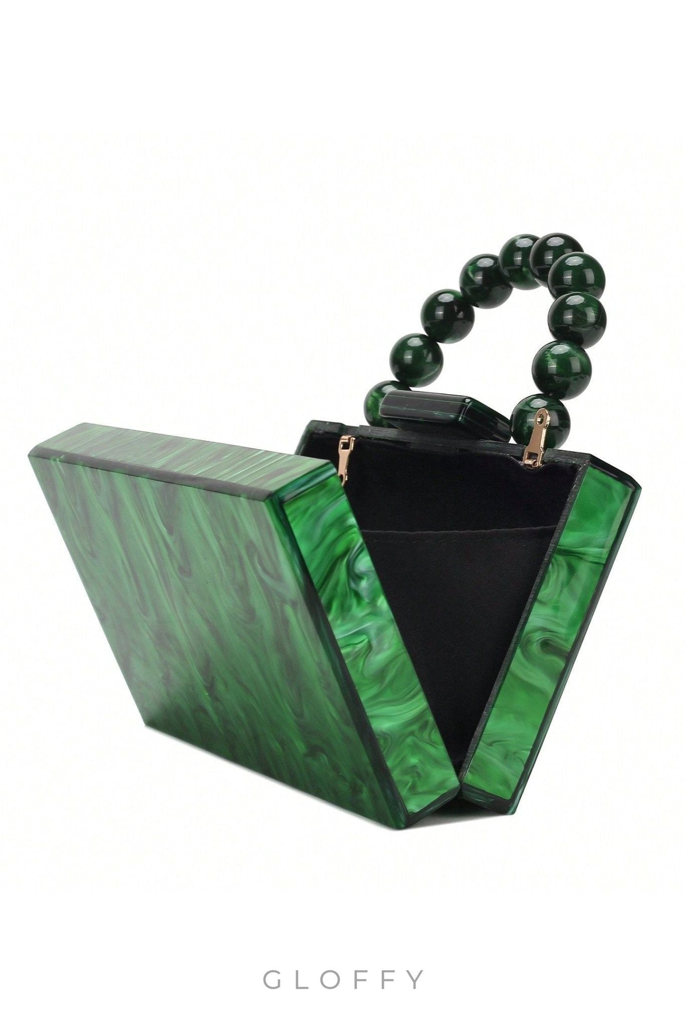 Emerald Mermer Desenli Boncuk Saplı Çanta
