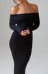 Omuz Dekolteli Uzun Triko Elbise – Siyah