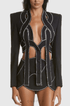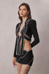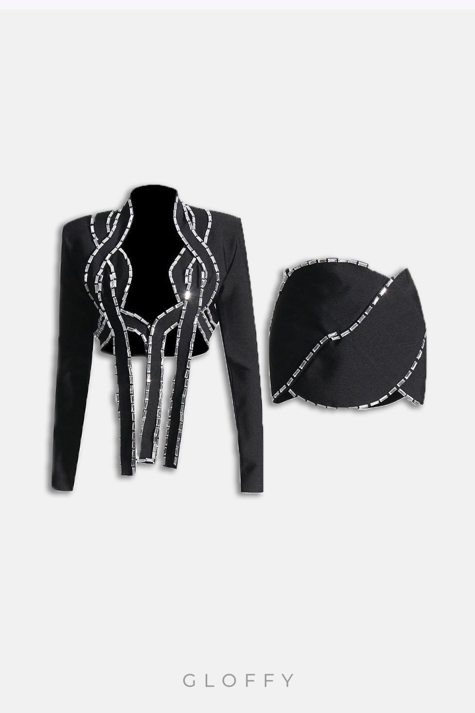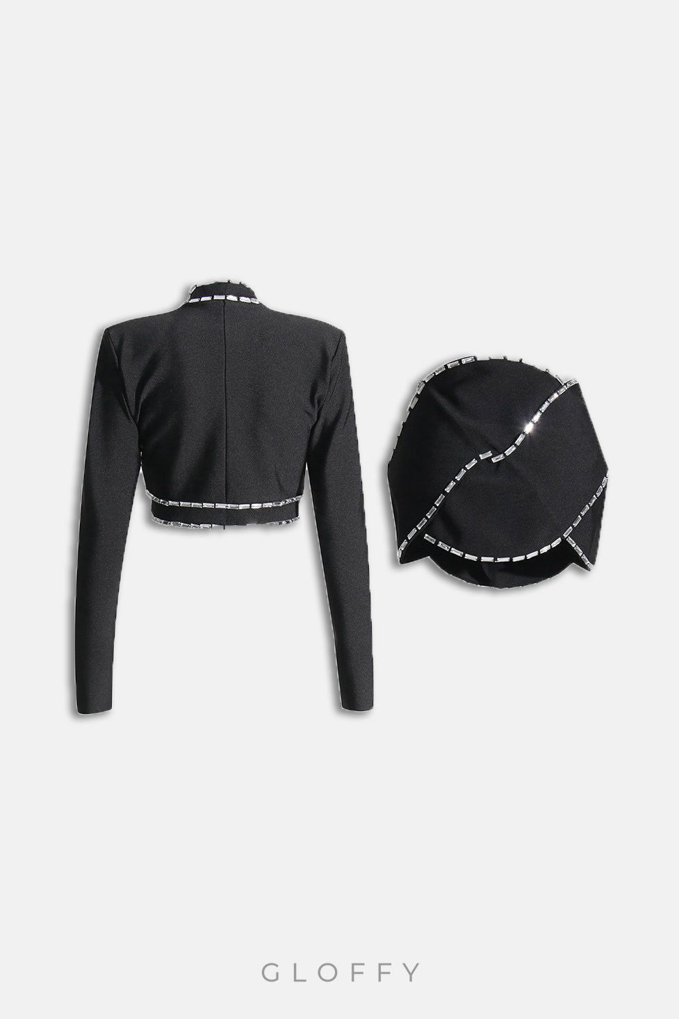 Blake Süslemeli Bandaj Detaylı Kısa Blazer Takım ile cesur bir stil ifadesine hazır olun. Zarif ve şık siyah blazer takımı, her kombine ışıltılı bir dokunuş katan göz alıcı işlemeleriyle öne çıkar. Gardırobunuza sofistike bir hava katmak için mükemmel bir tercih.