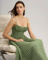 Gösterişli bir akşam kombininde askılı topuklu ayakkabılar ve şık bir çanta ile tamamlanabilir, daha günlük bir stil için babetler ve ince aksesuarlarla eşleştirilebilir.