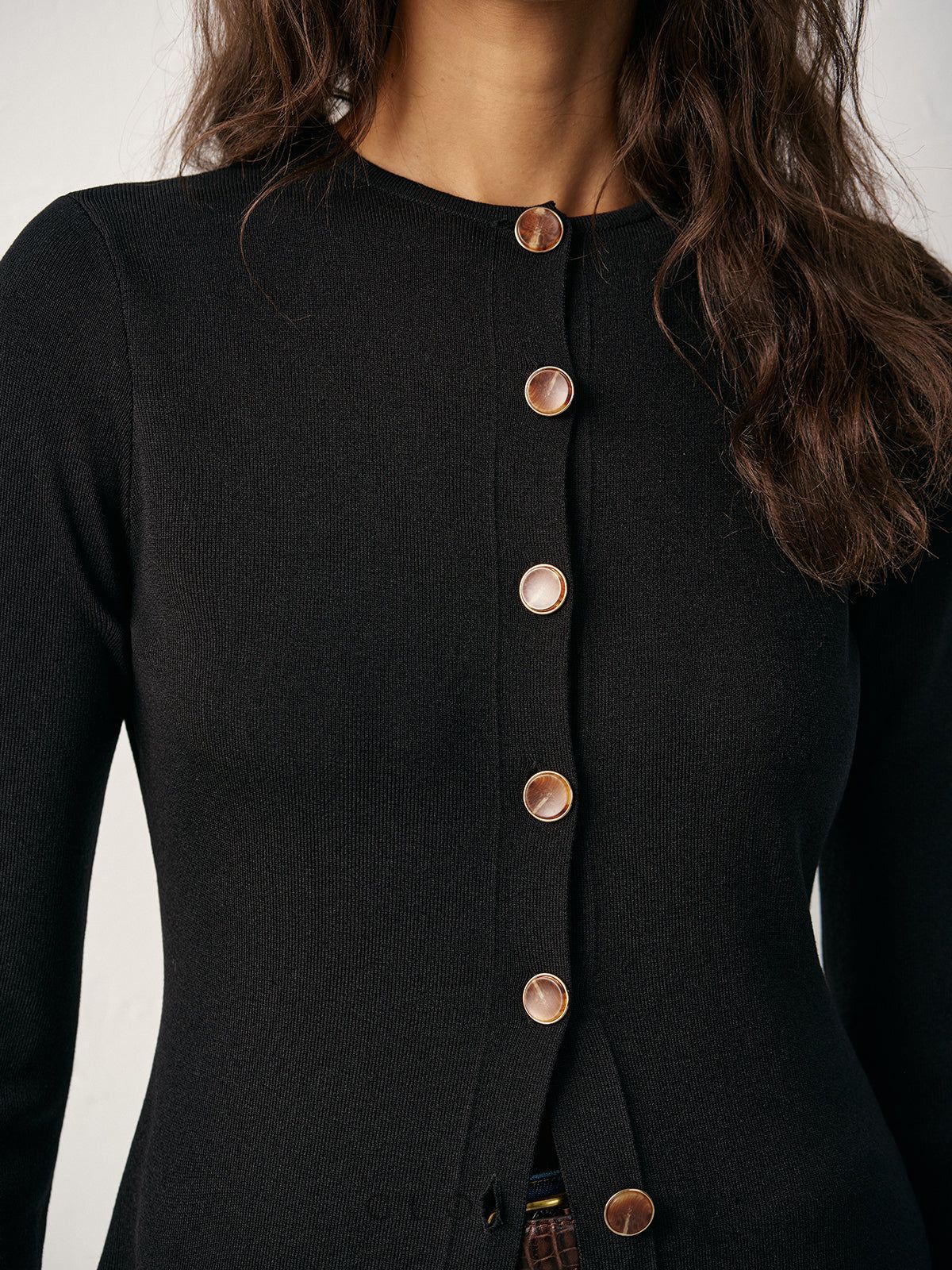Düğmeli Uzun Hırka Kesim Triko Elbise – Siyah