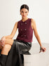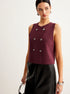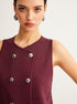 Bu zarif bordo jarse yelek, metal düğme detaylarıyla sofistike bir dokunuş sunar. Giyimi kolay ve şık bir tamamlayıcı parça olarak hem resmi hem de günlük kombinlerinize modern bir zarafet katacaktır.