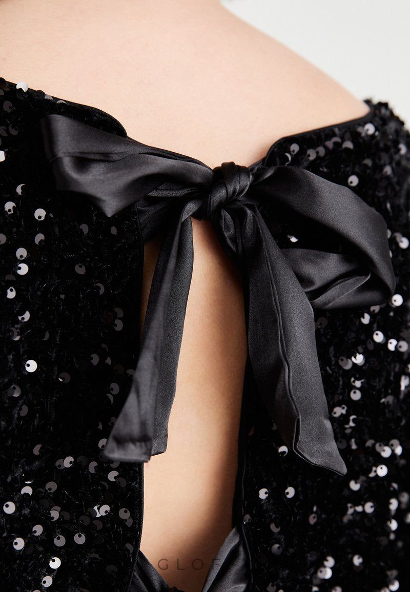 - Tasarım: Yüksek parlaklıkta payetler, papyon detaylı, iki yönlü kullanım