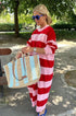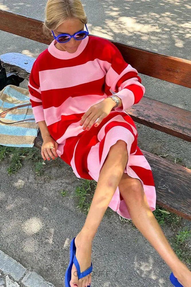 - Tasarım: Çizgili, büyük beden, uzun kollu örgü elbise