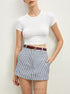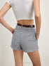 Çizgili Denim Şort ile modern ve zarif bir yaz tarzını keşfedin!