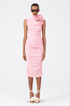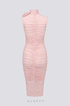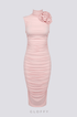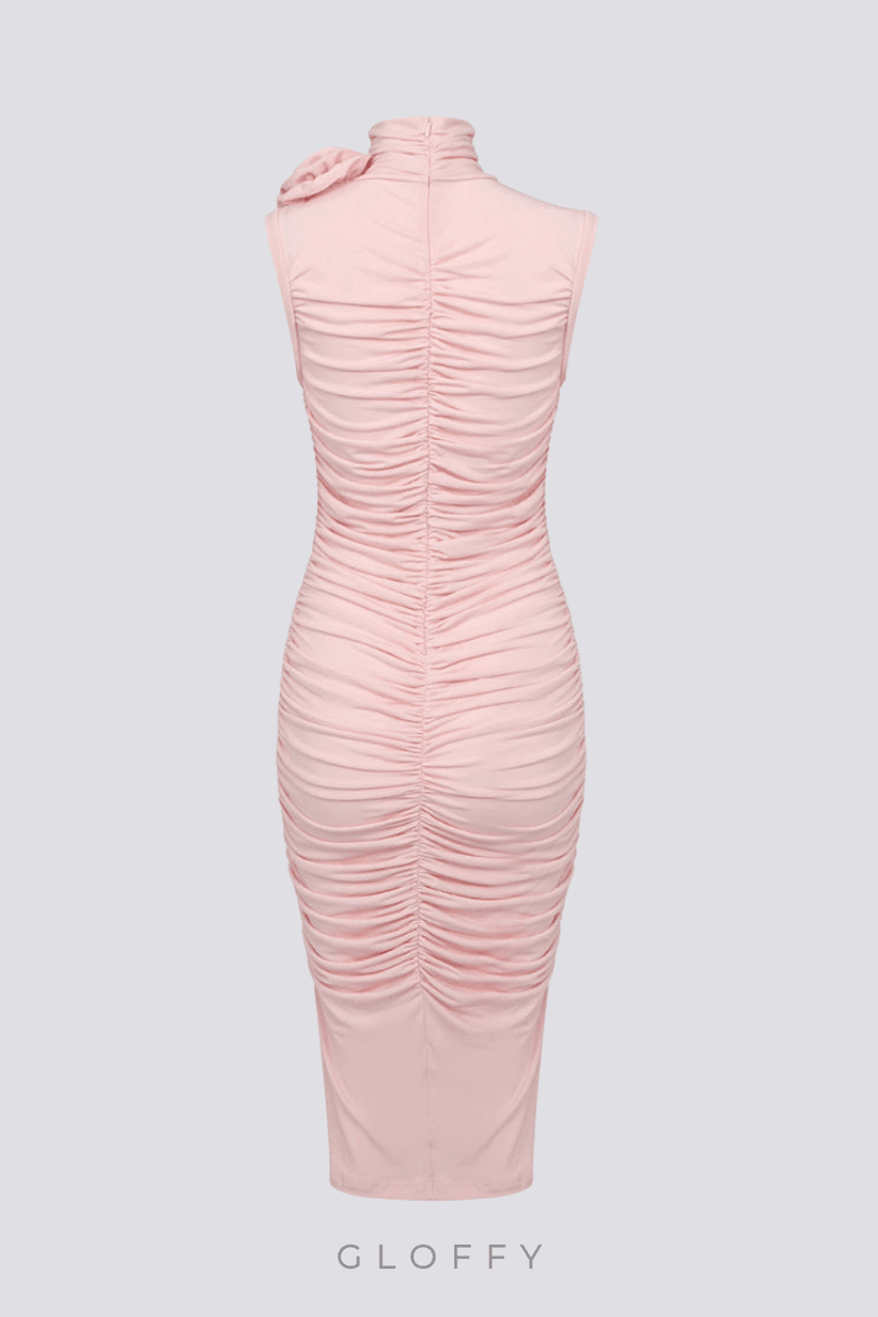 Bu pembe kolsuz dantelli bodycon elbise zarafet ve modern çekicilik havası yayıyor. Çiçek detayları ve büzgülü kumaş kıvrımlarınızı vurgulayarak hoş bir siluet yaratıyor. Esnek malzemeyle tasarlanan bu ürün, hem konfor hem de şık bir uyum sunar; figürünüzü vurgulamak için mükemmeldir.