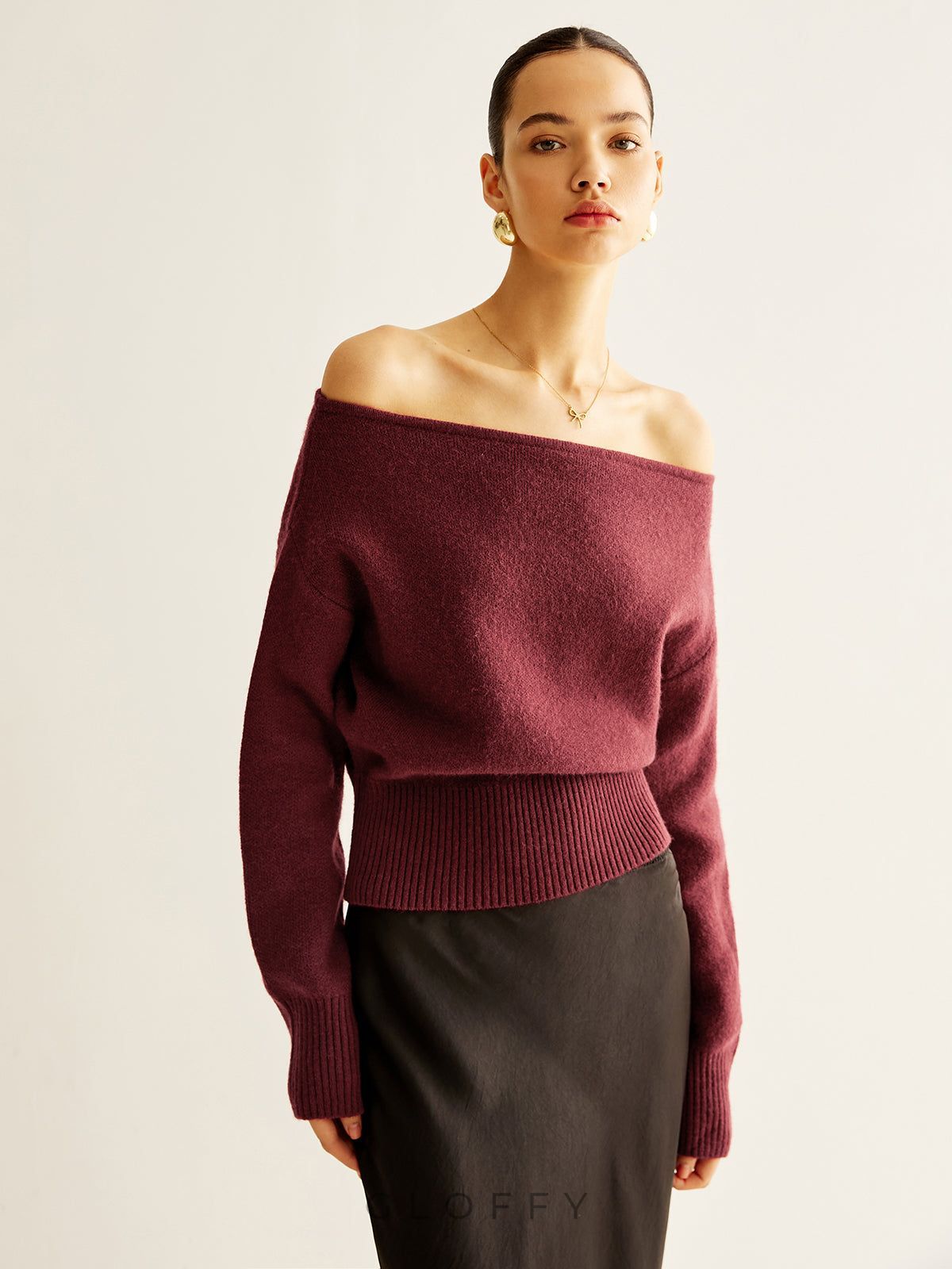 Salaş Yaka & Fitilli Bel Detaylı Triko – Mürdüm