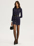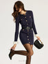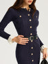 Kontrast Manşet Metal Düğmeli Kuşaklı Mini Elbise