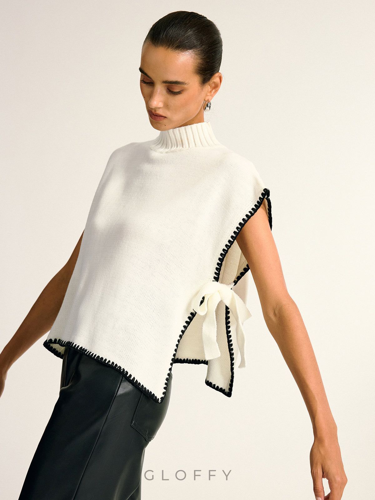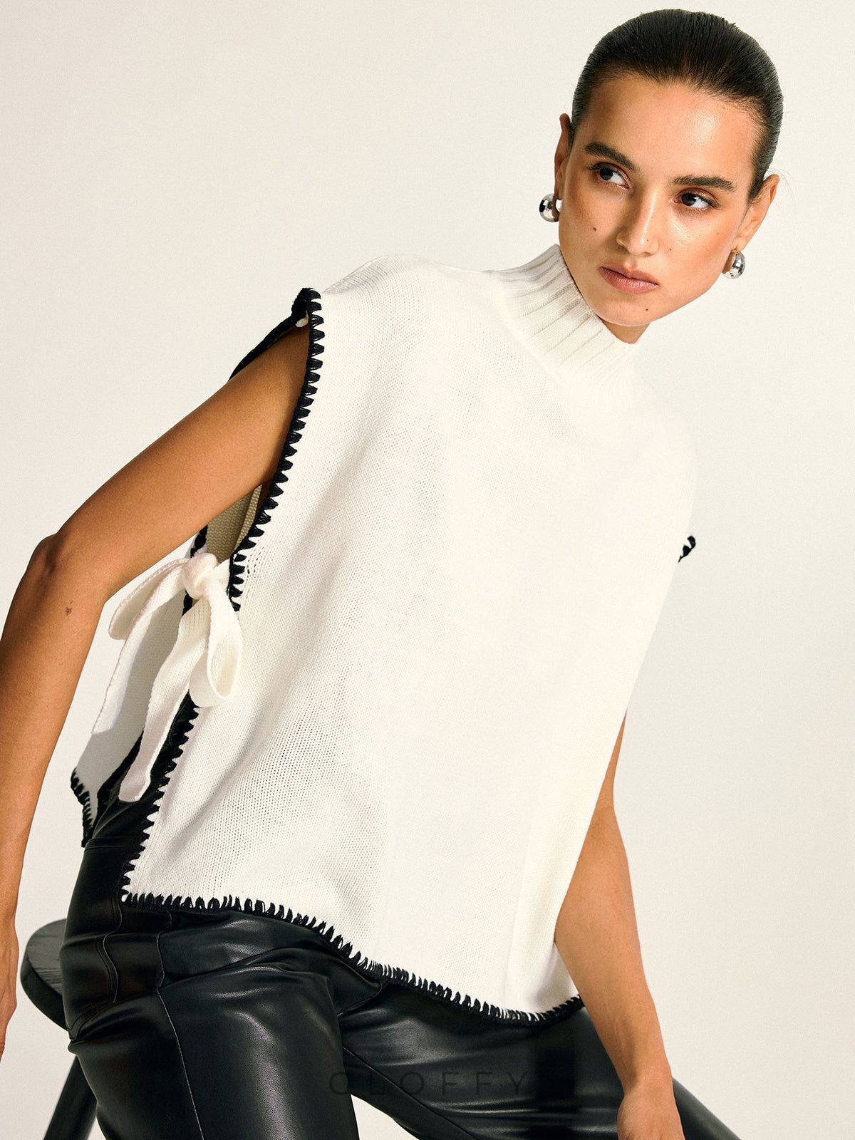Kontrast Kenar Yan Fiyonk Yuvarlak Yaka Süveter Yelek