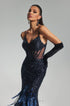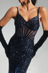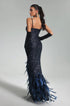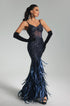 Amelina Korse Detaylı Tüy ve Payetli Zarif Maxi Elbise