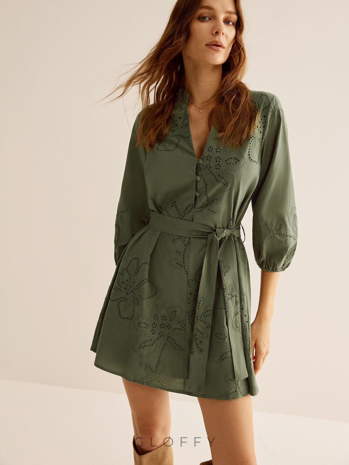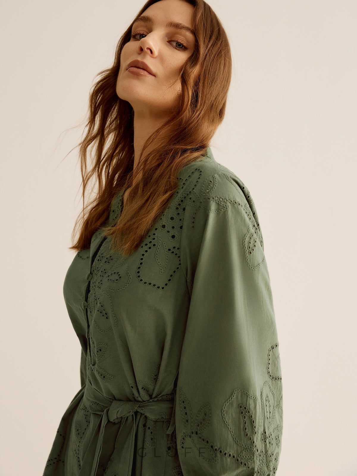 Pamuk Boheme Nakışlı Kemerli Elbise